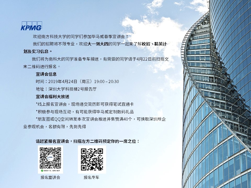 欢迎你们参加毕马威春季宣讲会哦!